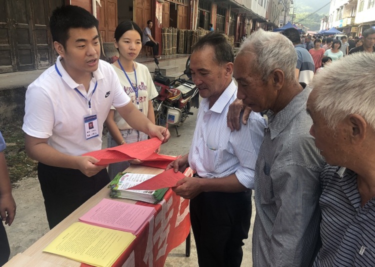 8月22日,湖源乡纪委联合乡综治办、乡司法所、乡警务室等部门,利用圩天开展扫黑除恶宣传活动,通过分发宣传资料、受理咨询等方式,引导群众对涉黑涉恶腐败问题进行举报,严肃查处涉黑涉恶腐败问题和背后“保护伞”。图为湖源乡纪委干部在圩场向来往群众发放扫黑除恶宣传单。