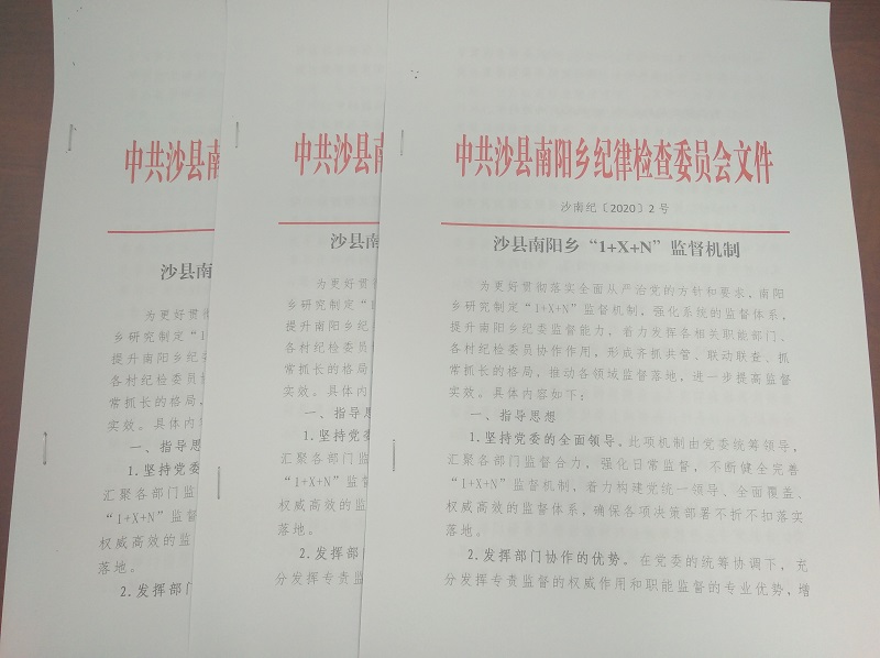 按照乡镇纪委监督执纪工作提升年活动“一镇一品”要求,南阳乡积极探索“1+X+N”监督机制,进一步提高监督质效。半年来,联合乡各办站所、村级纪检委员在违反中央八项规定精神监督、五个专项治理领域监督、疫情防控专项监督等方面开展监督检查44次,发现问题6个,解决问题5个。