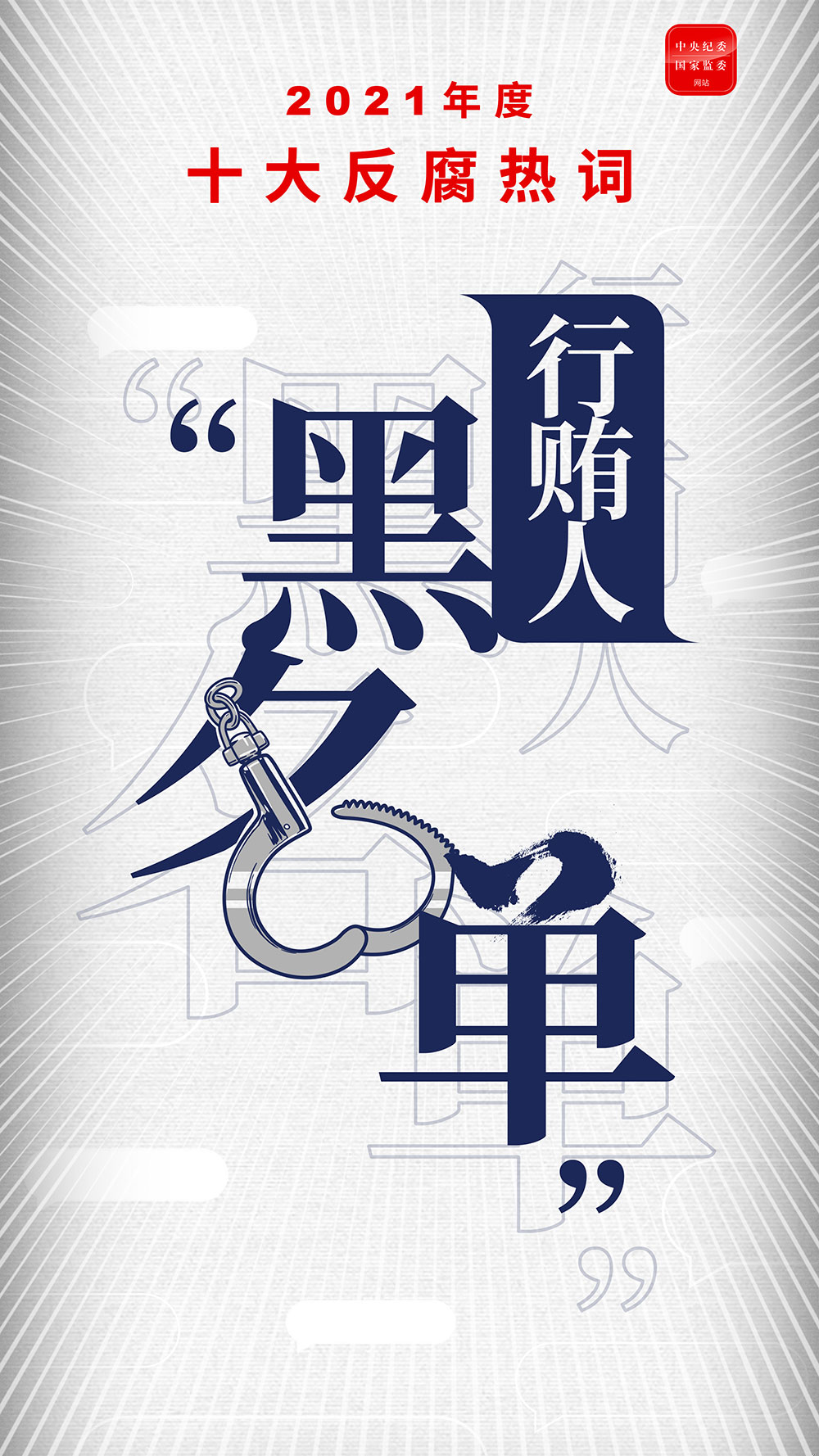 2021年是党和国家历史上具有里程碑意义的一年,我们隆重庆祝中国共产党成立一百周年、开启全面建设社会主义现代化国家新征程、实现了“十四五”良好开局。年末岁尾,中央纪委国家监委网站联合国家语言资源监测与研究中心,推出2021年度十大反腐热词,回顾年度正风肃纪反腐热点,勾勒一年来纪检监察机关忠实履行党章和宪法赋予的职责的工作实践。